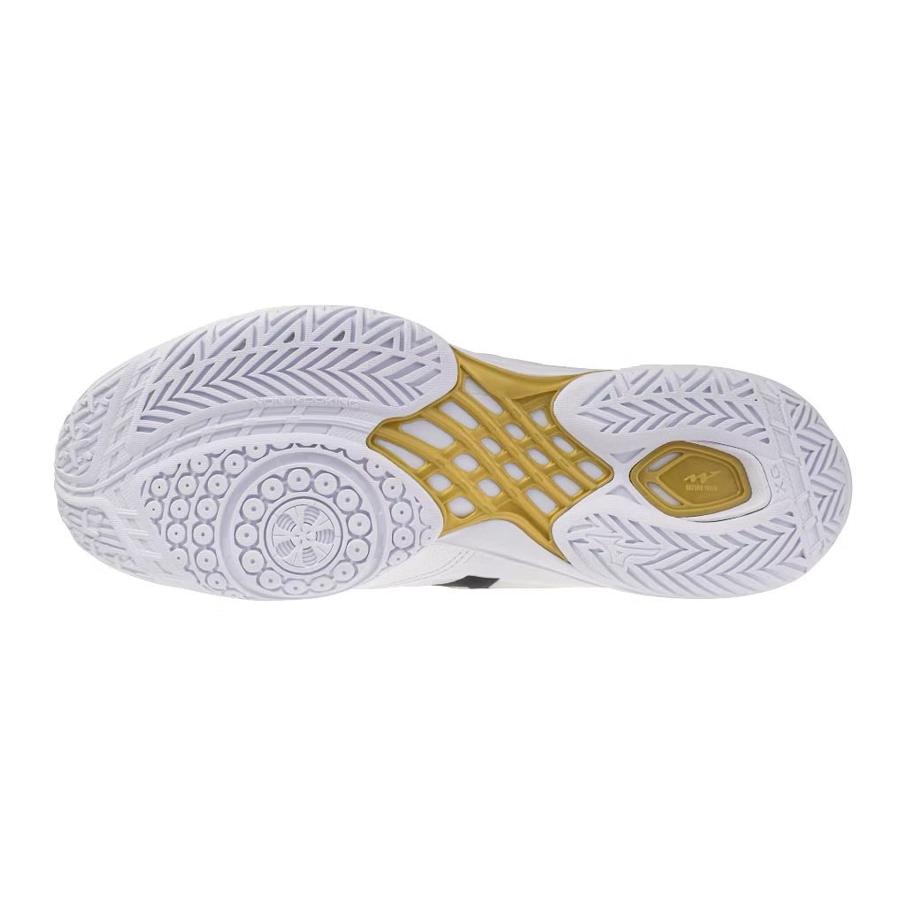 Brand : Mizuno Model : 71GA247331 Colour : White/ Stargazer/ Dazzling Blue PICK UP THE PACEThis shoe is loaded with features that support faster footwork, better lunges, and freer movements. It has a foot-enveloping bootie structure for a fitted feel, which will help you move faster and with more ...Read more