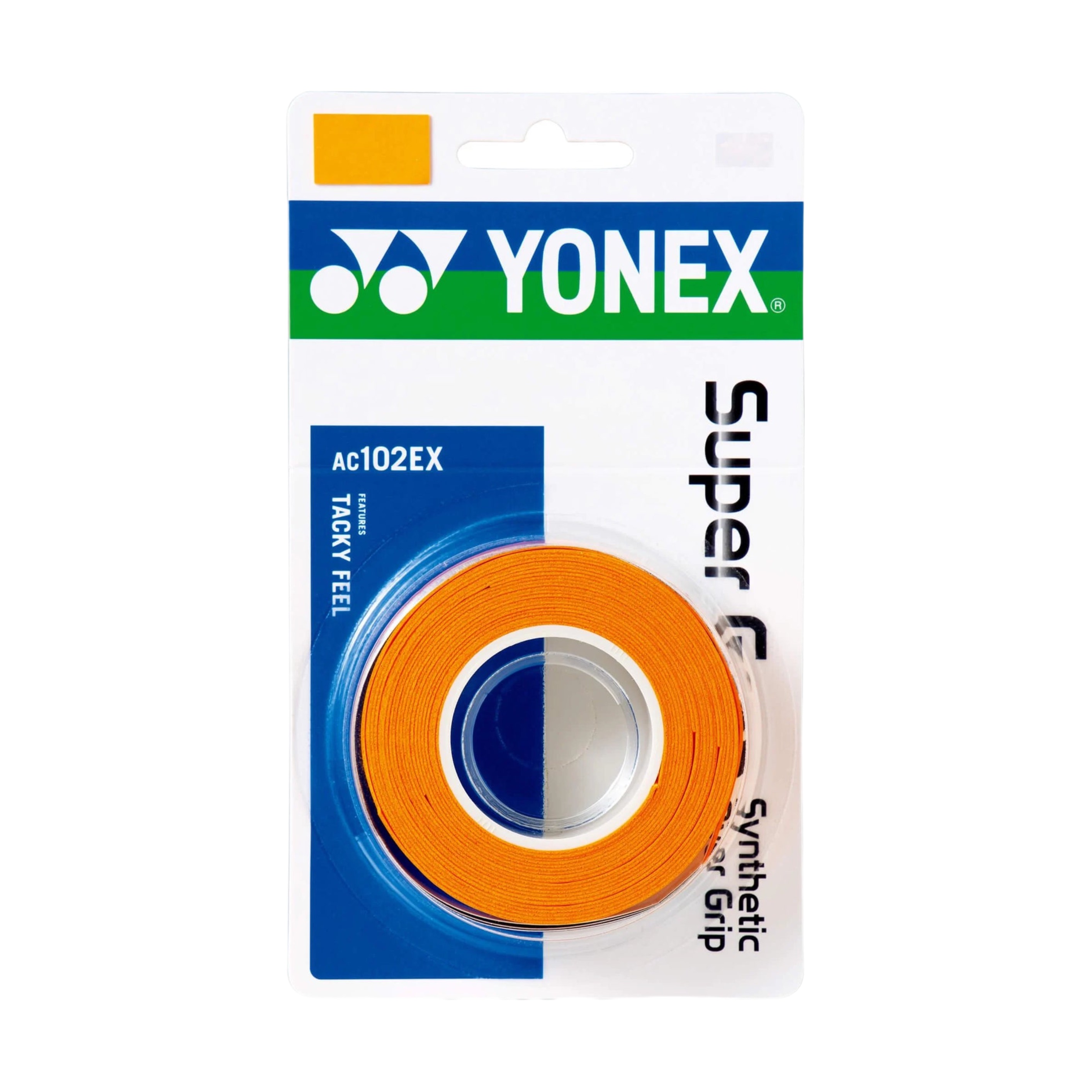 Brand : Yonex Model : AC102EX Quantity : 1 pack / 3 pieces Colour : Orange Features : Tacky Feel Width : 25mm Length : 1,200mm Thickness : 0.6mm Material : Polyurethane ...